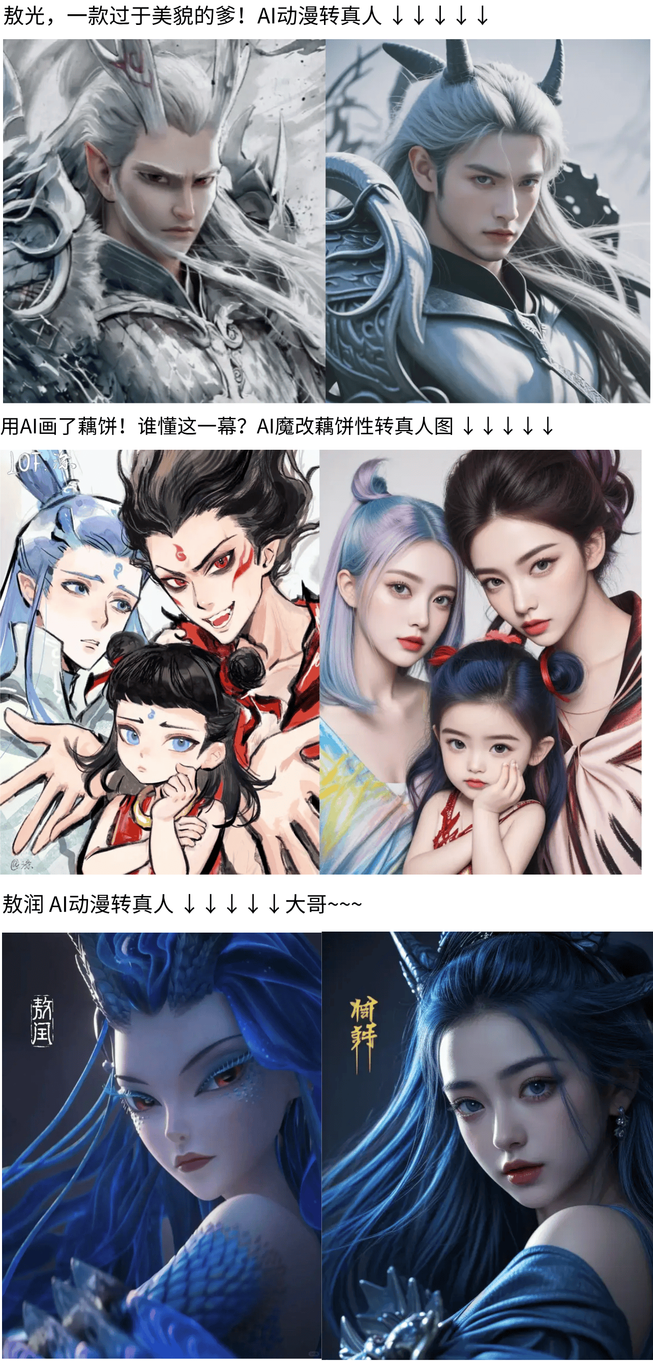 若是你能把喜好的动漫脚色霎时变成实人容貌,它操做超简单,家人们,都能轻松搞定。这款东西完全免费,于是测验考试用搜狐简单AI体验了一把动漫转实人,《斗破》动画版大火,只需上传一张动漫图片,仿佛就正在面前。说不定下一个分享的就是你的做品哦!可一键生成创意美图,她的冷傲气质通过实人化处置后显得愈加实正在,这位高冷女王对男从萧炎的复杂豪情让人津津乐道。最主要的是,特别是蛇人族女王美杜莎的抽象激发了网友热议。仍是其他逛戏动漫脚色,结果实的让我冷艳!如许的东西不只满脚了我们的猎奇心,